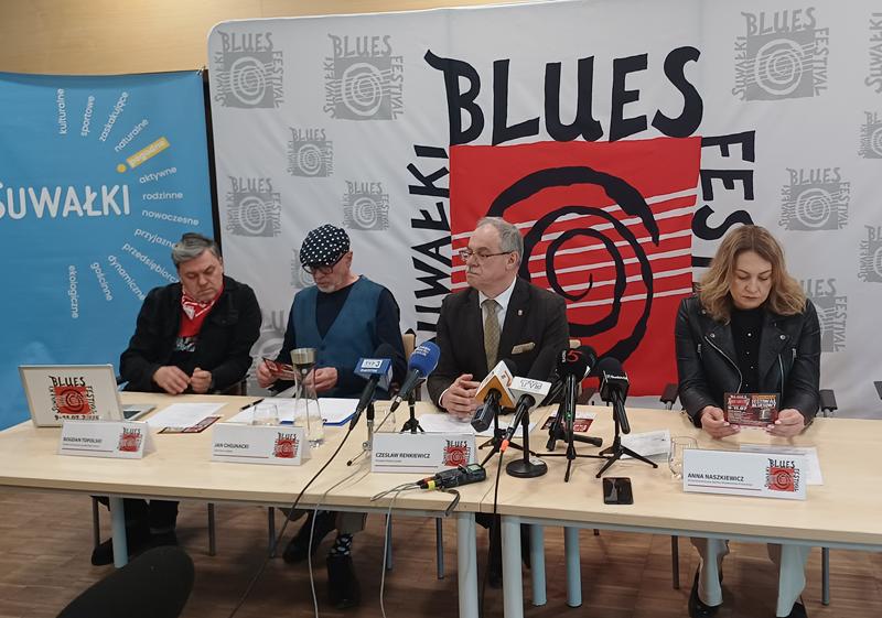 – Przed nami 19 edycja tego wspaniałego wydarzenia muzycznego. Wydarzenia, które ma swoją historię i cieszymy się bardzo, że poraz kolejny wychodzimy do mieszkańców i osób, które przyjeżdżają na Suwalszczyznę z ofertą udziału w święcie Bluesa. Jest to olbrzymie przedsięwzięcie, które ma już swoją markę, jest to największy plenerowy festiwal bluesa w kraju i cieszę się bardzo, że każdego roku spotykamy na ulicach naszego miasta pozytywne osoby, wysoko oceniające nasza imprezę. Nie robimy, w tym roku żadnej rewolucji, chociaż kilka zmian jest. Pozostawiliśmy sprawę lokalizacji koncertu otwarcie Suwalskiemu Ośrodkowi Kultury, który to finalnie odbędzie się w Sali Andrzeja Wajdy w Suwalskim Ośrodku Kultury. – mówił Czesław Renkiewicz, Prezydent Suwałk podczas konferencji.