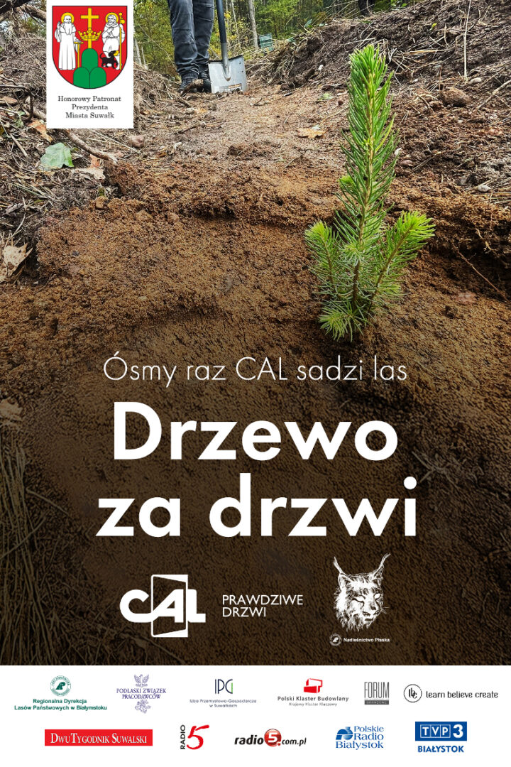 Już 13 października 2025 roku firma CAL prawdziwe drzwi po raz ósmy organizuje akcję sadzenia lasu pod hasłem „Drzewo za drzwi”. Tegoroczna edycja odbędzie się w Nadleśnictwie Płaska i zgromadzi około 80 uczestników, wśród nich pracowników firmy, partnerów, wolontariuszy oraz dzieci i młodzież z suwalskich szkół.