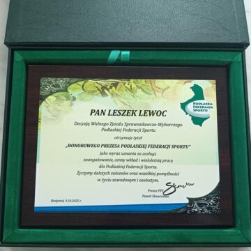 Nowo nadany tytuł Honorowego Prezesa Podlaskiej Federacji Sportu stanowi symboliczny wyraz wdzięczności i szacunku wobec Leszka Lewoca za jego wieloletnią pasję, oddanie i wkład w rozwój sportu na Podlasiu.