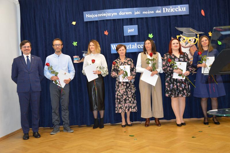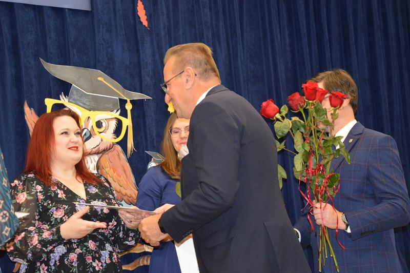 – Dziś honorujemy Państwa, najlepszych z najlepszych z suwalskich szkół. Jesteście Państwo reprezentantami setek zaangażowanych pedagogów i pracowników administracji i obsługi, których wysiłek jest kluczowy dla sukcesu naszej edukacji. Wszystkim Państwu, którzy wykonują swą pracę, składam dziś najserdeczniejsze życzenia. Niech Dzień Edukacji Narodowej będzie momentem, w którym możemy się na chwilę zatrzymać, pomyśleć o sukcesach i pomarzyć o kolejnych osiągnięciach – mówił Roman Rynkowski, zastępca Prezydenta Suwałk – To Państwo są, zaraz po rodzicach uczniów, osobami mającymi największy wpływ na kształtowanie osobowości i systemu wartości suwalskich dzieci i młodzieży. Dlatego Państwa misja jest tak ważna, a zarazem odpowiedzialna, wymaga poświęcenia, cierpliwości ogromnej pracy – dodał Rynkowski.
