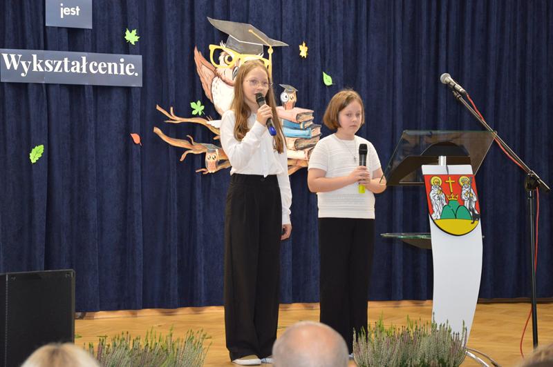Były okolicznościowe przemówienia, podziękowania za trud wychowania uczniów i kwiaty.