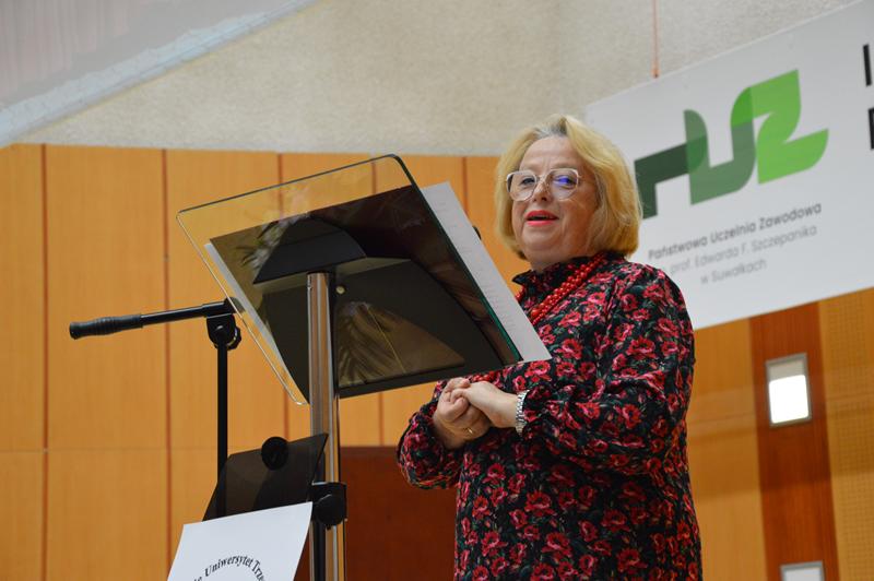 Prezes UTW Maria Jolanta Lauryn osobiście dziękowała osobom, które tworzyły i współtworzyły Stowarzyszenie oraz na co dzień wpływają na jego wizerunek i skuteczne działanie. Witając uczestników spotkania zwróciła uwagę na współpracę z suwalska Uczelnią, bez której sprawne funkcjonowanie Uniwersytetu Trzeciego Wieku nie byłoby możliwe.