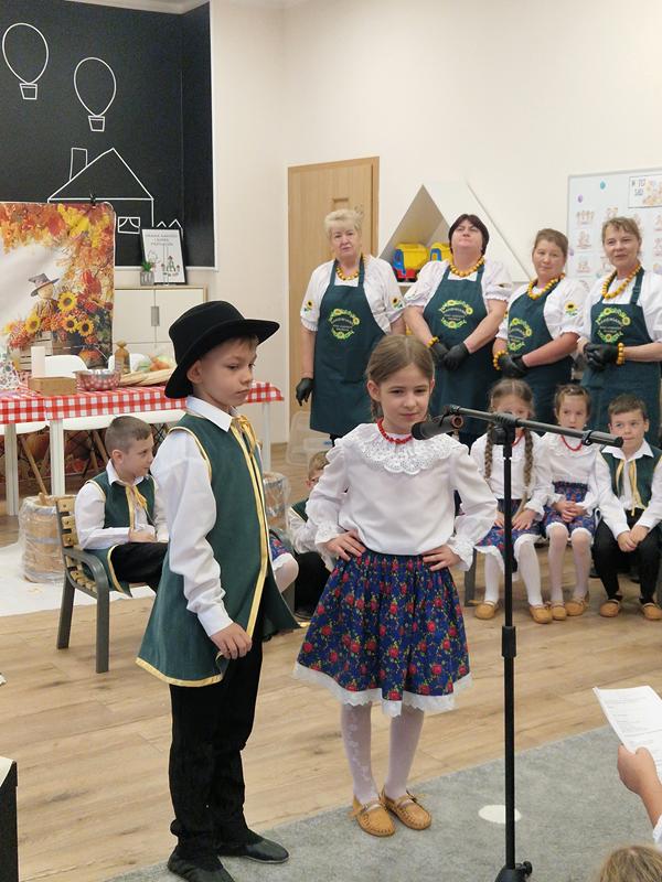 W piątek, 17 października, w Przedszkolu nr 8 z Oddziałami Integracyjnymi w Suwałkach odbyło się wyjątkowe wydarzenie pod hasłem ,,Jesienna Kraina Smaków”, które wprowadziło uczestników w klimat polskiej, barwnej jesieni oraz dawnych, ludowych tradycji. Przedszkolaki z grupy sześciolatków zaprezentowały ludowe przedstawienie, pełne piosenek i wierszyków inspirowanych jesienią oraz folklorem. Mali artyści wystąpili w pięknych, kolorowych strojach ludowych, a ich zaangażowanie i radość spotkały się z ogromnym entuzjazmem publiczności.