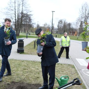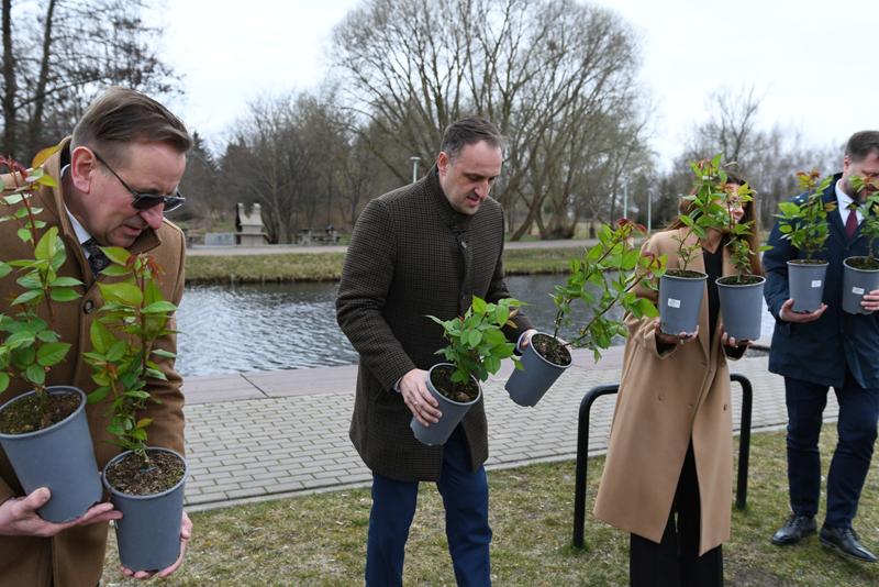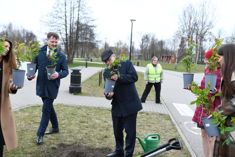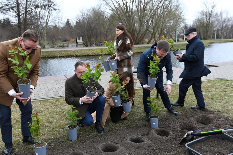 Na nadrzecznych bulwarach mer Alytusa Nerijus Cesiulis ze swoimi zastępczyniami Kristiną Daugeleviciene i Liną Gaidžiunaite oraz dyrektorem wykonawczym Gintarasem Rakaitisem wspólnie z prezydentem Suwałk Czesławem Renkiewiczem i przewodniczącym suwalskiej Rady Miejskiej Zdzisławem Przełomcem zasadzili jubileuszowe białe róże – nawiązujące do herbu Alytusa.