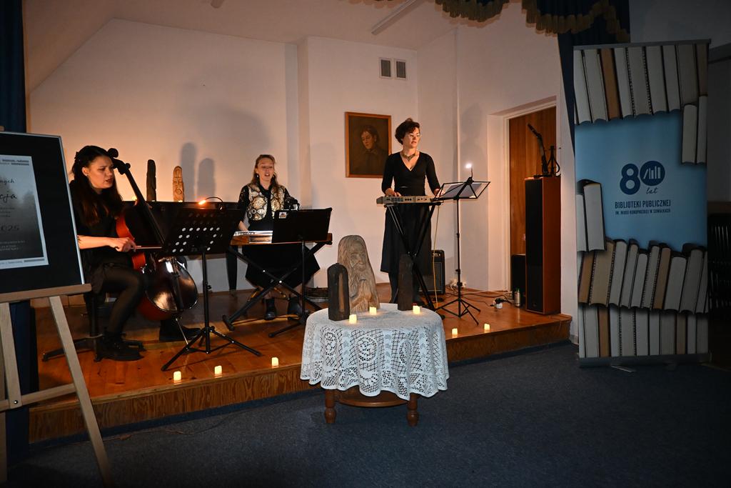 W Bibliotece Publicznej im. Marii Konopnickiej 9 grudnia w sali im. Jadwigi Towarnickiej odbył się koncert pieśni żałobnych zespołu Lukrecja.