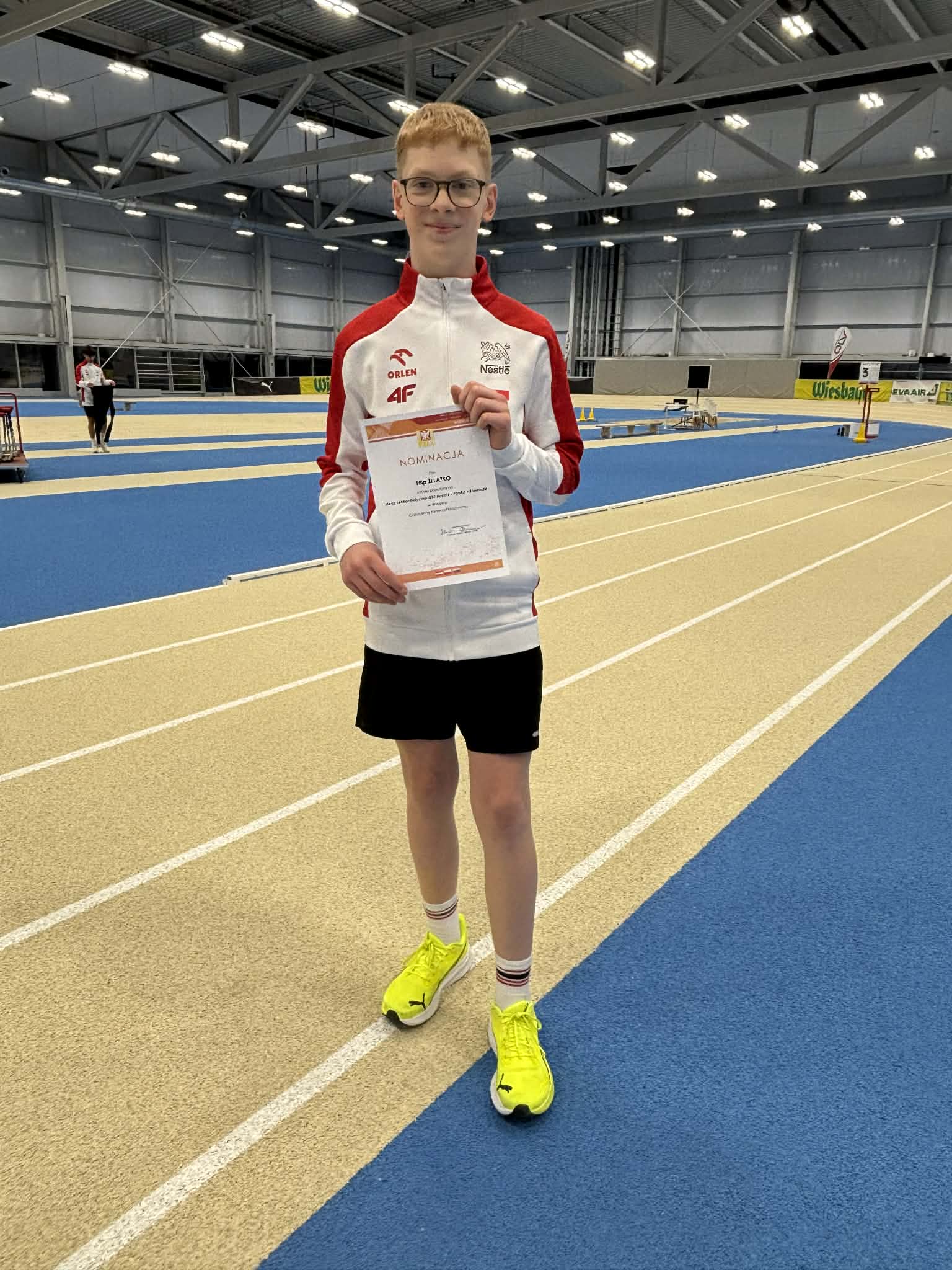 Miejsce w reprezentacji Polski wywalczył on w Spale na zawodach ogólnopolskich adeptów sportu, uczestniczących na co dzień w zajęciach realizowanego przez Polski Związek Lekkiej Atletyki programu upowszechniania sportu Lekkoatletyka dla Każdego!. Z tego grona wyłoniona została 32-osobowa drużyna, która wystartowała w międzynarodowych zawodach lekkoatletów urodzonych w latach 2012-2013. To był pierwszy w historii zagraniczny występ reprezentacji Lekkoatletyki dla Każdego! Reprezentacja Polski wywalczyła po dwa złote i srebrne medale.
