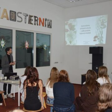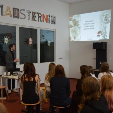 Doktorant w Małopolskim Centrum Biotechnologii Uniwersytetu Jagiellońskiego Igor Kaczmarczyk opowiadał o białkach. Podczas spotkania uczestnicy dowiedzieli się m.in.: czy białka są białe; po co obserwować białka i jak to robić oraz za co białka są odpowiedzialne?
