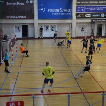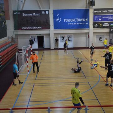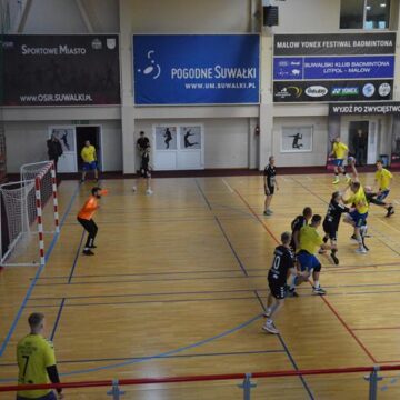 W pierwszym meczu rozegranym w suwalskiej hali Ośrodka Sportu i Rekeacji przegrali 27:33 (11:17). Zwraca uwagę to, ze debiutujacy w rozgrywkach suwalski zespół zremisował druga połowę meczu. Niestety strat z pierwszej części spotkania nie udało się odrobić. Skład suwalskiego zespołu: Bogusz Skubis – Michał Siemiaszko, Mateusz Bruszewski, Robert Szwech, Mateusz Warmus, Adrian Czygier, Dominik Stabiński, Sebastian Ogorkis, Oleksander Kowal, Kamil Nieścier, Wojciech Bobrowski, Artur Pietkiewicz, Jakub Szuliński, Robert Jankowski, Paweł Jurkun, Rafał Golub. Kolejny mecz suwalscy piłkarze ręczny rozegrają 12 października o godz. 15 w Zamościu z MKS Padwa.