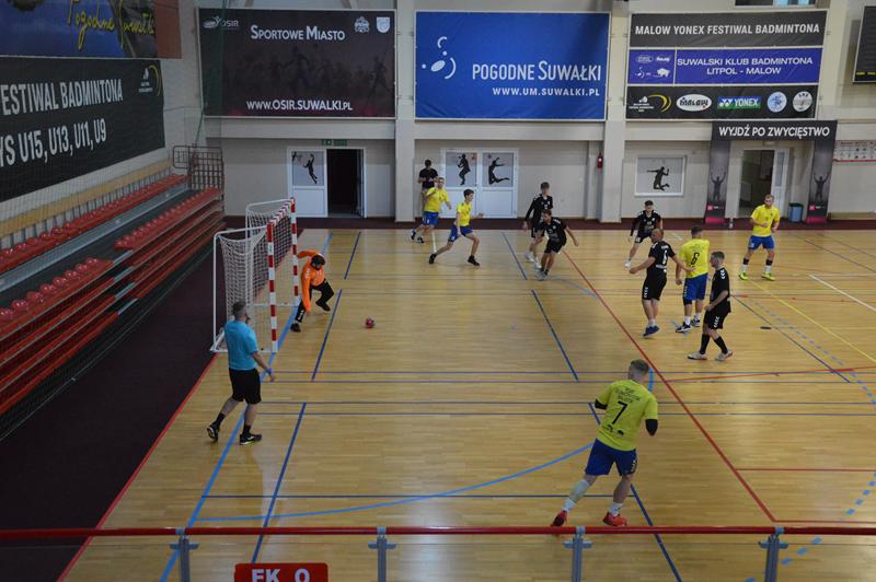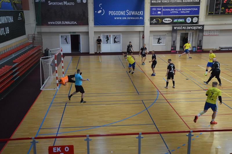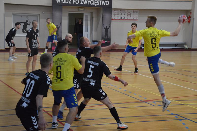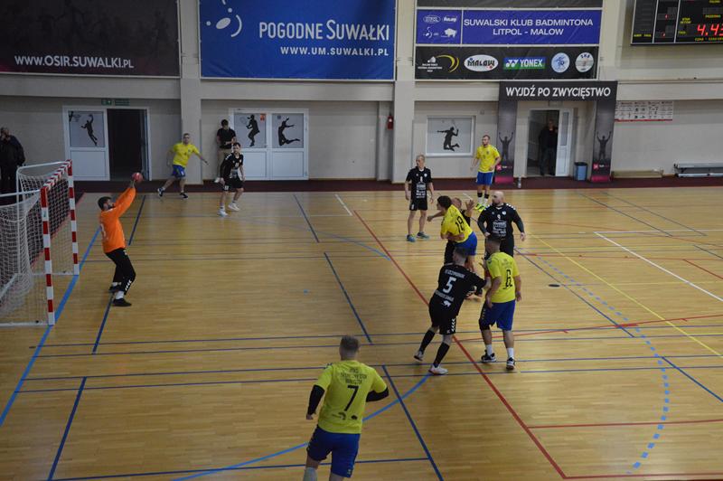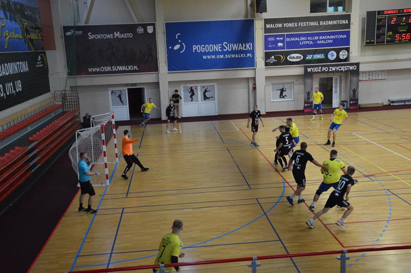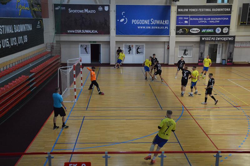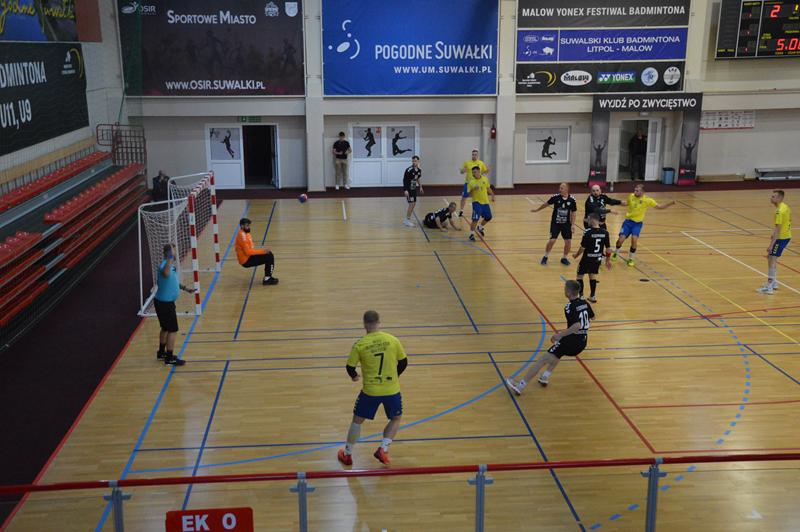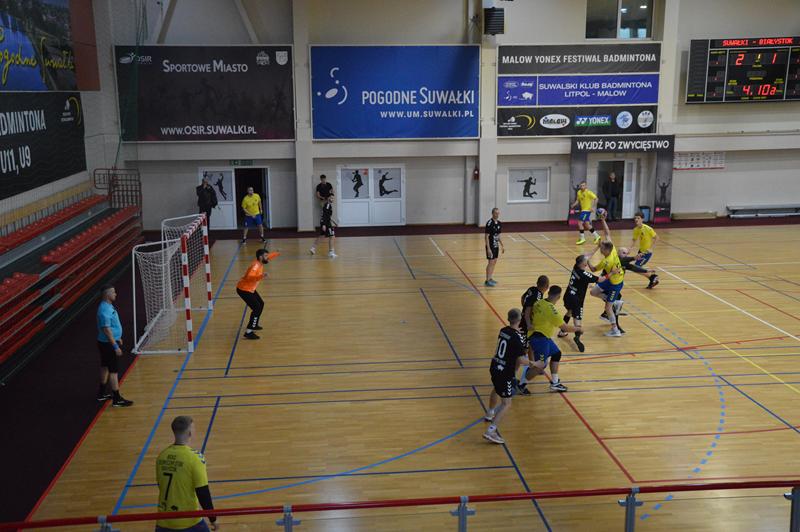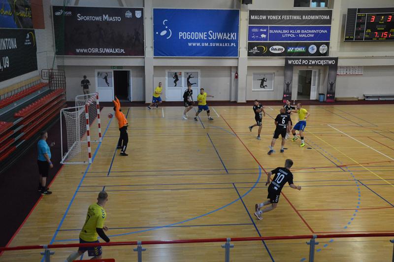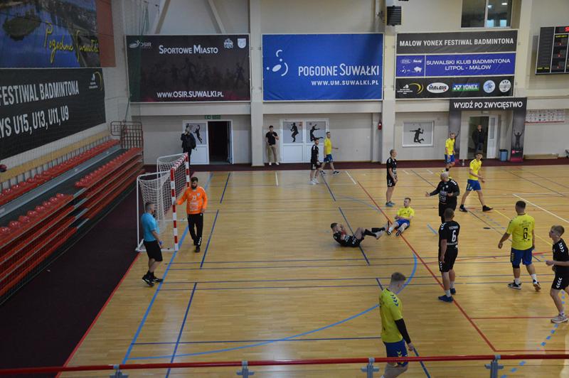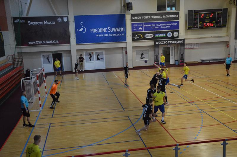 W pierwszym meczu rozegranym w suwalskiej hali Ośrodka Sportu i Rekeacji przegrali 27:33 (11:17). Zwraca uwagę to, ze debiutujacy w rozgrywkach suwalski zespół zremisował druga połowę meczu. Niestety strat z pierwszej części spotkania nie udało się odrobić. Skład suwalskiego zespołu: Bogusz Skubis – Michał Siemiaszko, Mateusz Bruszewski, Robert Szwech, Mateusz Warmus, Adrian Czygier, Dominik Stabiński, Sebastian Ogorkis, Oleksander Kowal, Kamil Nieścier, Wojciech Bobrowski, Artur Pietkiewicz, Jakub Szuliński, Robert Jankowski, Paweł Jurkun, Rafał Golub. Kolejny mecz suwalscy piłkarze ręczny rozegrają 12 października o godz. 15 w Zamościu z MKS Padwa.