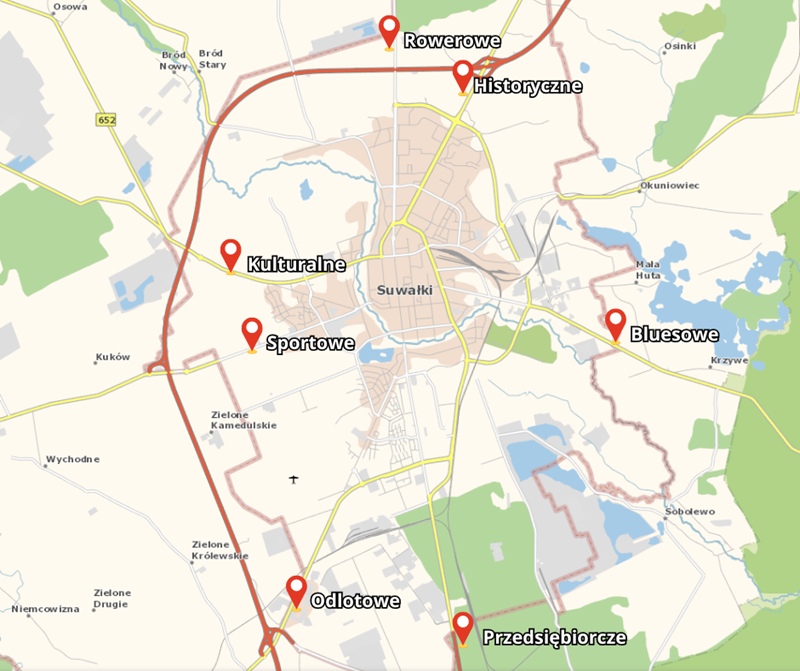 Przed Państwem 7 propozycji nowych witaczy, które powitają wjeżdżających do miasta, ale też zaproszą do niego ponownie. Ta inwestycja to nie tylko remont, ale przede wszystkim zmiana wizerunkowa. Każdy z 7 witaczy stanie ne jednej z dróg wjazdowych do Suwałk co obrazuje mapa z zaproponowanymi lokalizacjami.