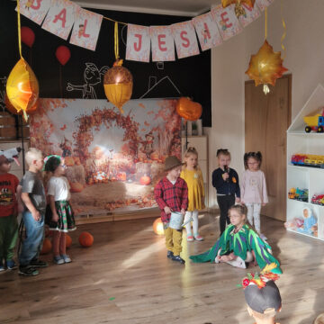 Bal rozpoczęła uroczysta część artystyczna, podczas której Pani Jesień przywitała wszystkie dzieci. Następnie każda grupa przedszkolna zaprezentowała swoje jesienne występy. Nie zabrakło także wyjątkowego momentu – wyboru jesiennego króla i królowej balu! Na zakończenie każde dziecko otrzymało pamiątkowy dyplom „Przyjaciela Jesieni”.