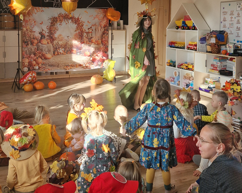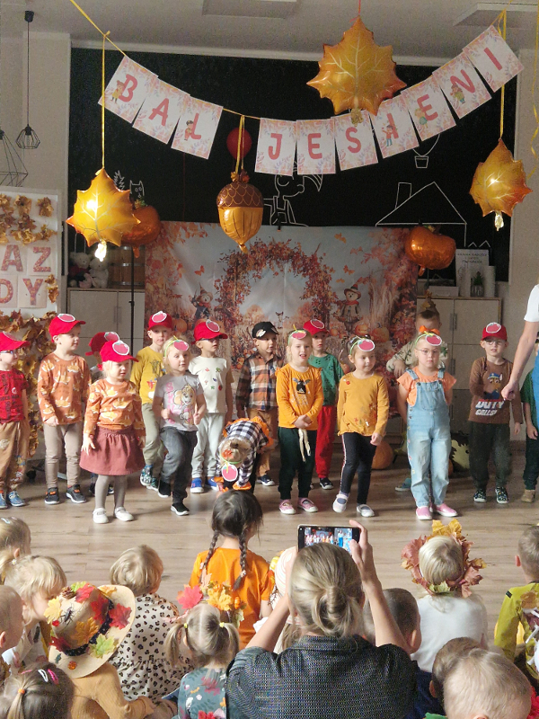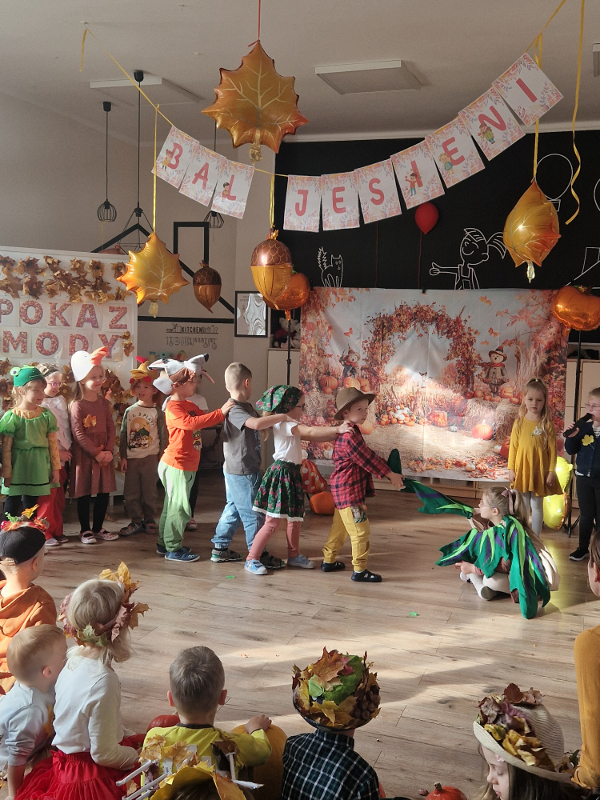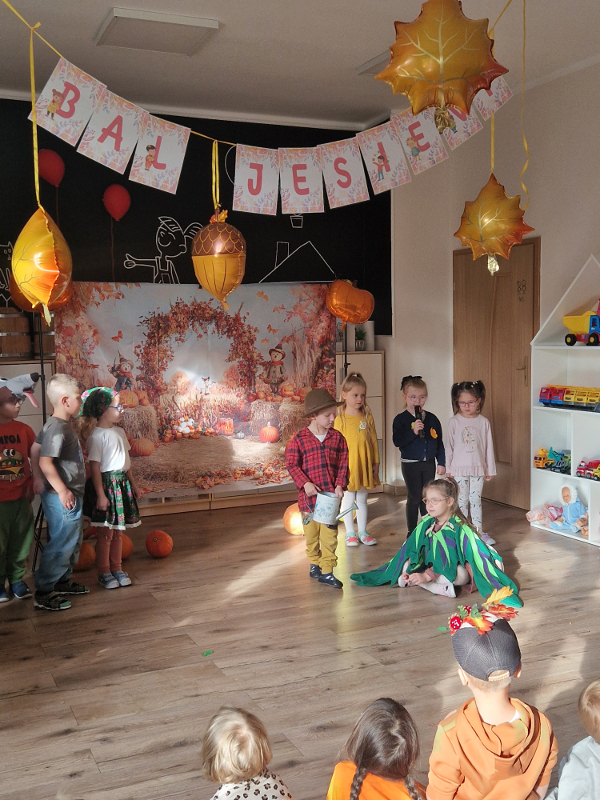 Bal rozpoczęła uroczysta część artystyczna, podczas której Pani Jesień przywitała wszystkie dzieci. Następnie każda grupa przedszkolna zaprezentowała swoje jesienne występy. Nie zabrakło także wyjątkowego momentu – wyboru jesiennego króla i królowej balu! Na zakończenie każde dziecko otrzymało pamiątkowy dyplom „Przyjaciela Jesieni”.