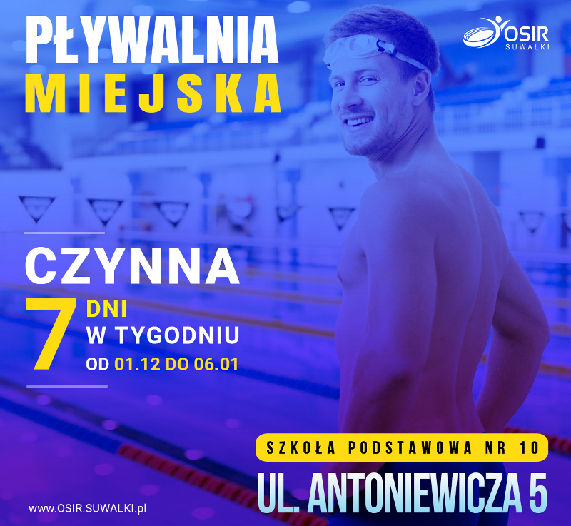 Ośrodek Sportu i Rekreacji w Suwałkach informuje, że w odpowiedzi na liczne prośby dotyczące udostępnienia pływalni w Szkole Podstawowej nr 10, basen będzie czynny również w weekendy.