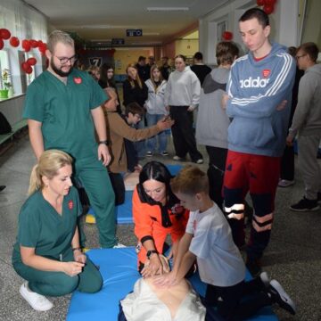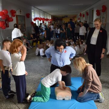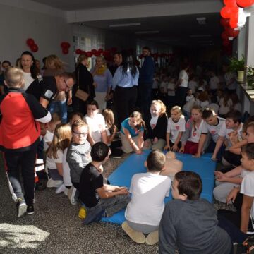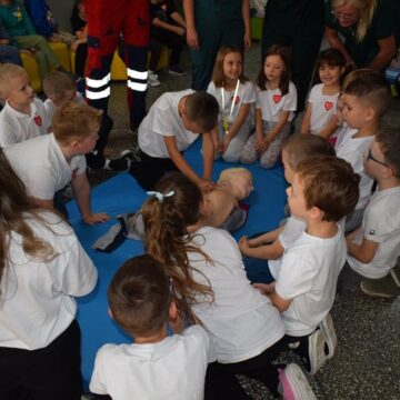 Ponad 200 uczniów suwalskiej Szkoły Podstawowej nr 7 im. św. Jana Pawła II uczestniczyło w organizowanej w całej Polsce przez Wielką Orkiestrę Świątecznej Pomocy akcji bicia rekordu w liczbie osób udzielających jednocześnie pierwszej pomocy. W suwalskiej „siódemce” w trwającej pół godziny akcji uczestniczyło siedem klas. Wcześniej uczniowie ćwiczyły w klasach udzielanie pierwszej pomoc. Dowiedziały się jak ją wykonać i ile uciśnięć klatki piersiowej trzeba wykonać w czasie takiej akcji.