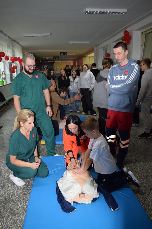 Ponad 200 uczniów suwalskiej Szkoły Podstawowej nr 7 im. św. Jana Pawła II uczestniczyło w organizowanej w całej Polsce przez Wielką Orkiestrę Świątecznej Pomocy akcji bicia rekordu w liczbie osób udzielających jednocześnie pierwszej pomocy. W suwalskiej „siódemce” w trwającej pół godziny akcji uczestniczyło siedem klas. Wcześniej uczniowie ćwiczyły w klasach udzielanie pierwszej pomoc. Dowiedziały się jak ją wykonać i ile uciśnięć klatki piersiowej trzeba wykonać w czasie takiej akcji.