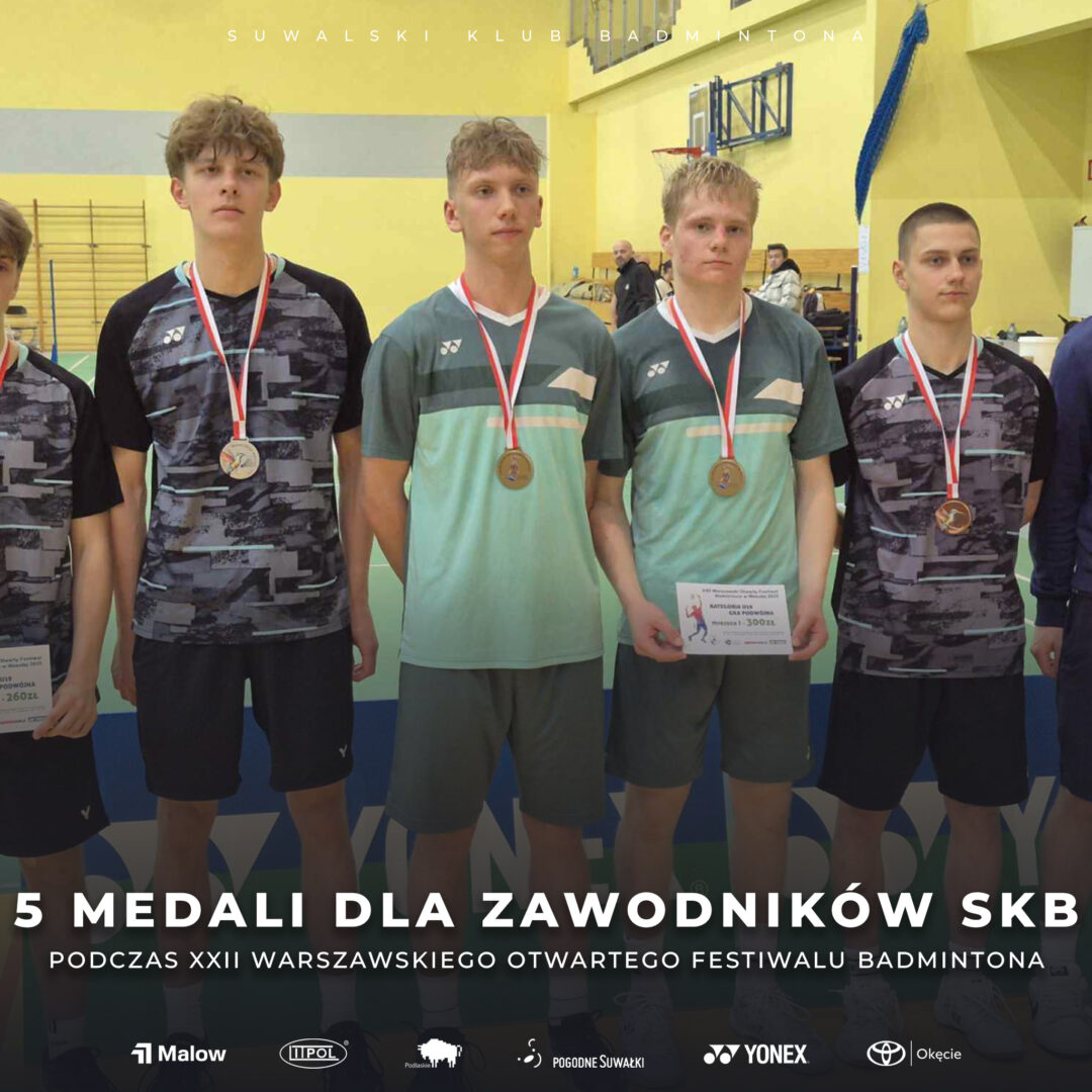 Pięć medali wywalczyli zawodnicy Suwalskiego Klubu Badmintona z rozgrywanego w Warszawie XXII Warszawskiego Otwartego Festiwalu Badmintona.
