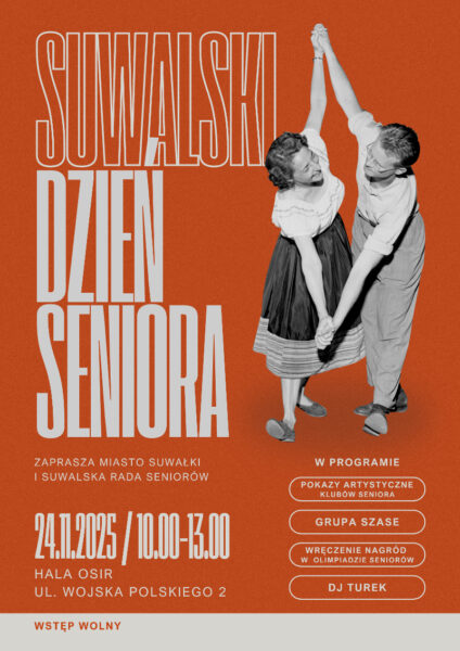 Suwalska Rada Seniorów i Miasto Suwałki zapraszają na Suwalski Dzień Seniora w poniedziałek 24 listopada w godzinach 10-13 w hali Ośrodka Sportu i Rekreacji, ul. Wojska Polskiego 2. Wstęp wolny.