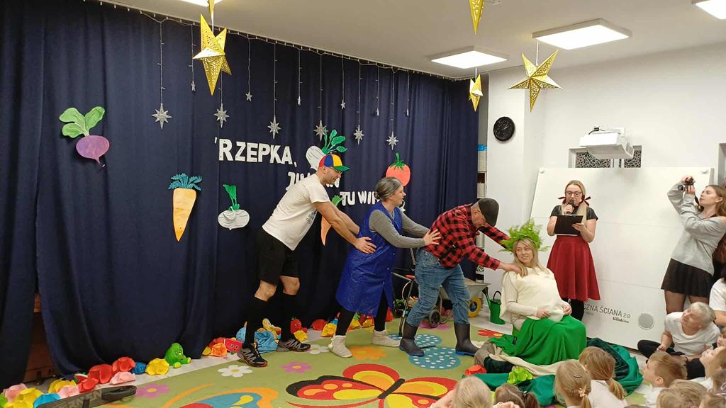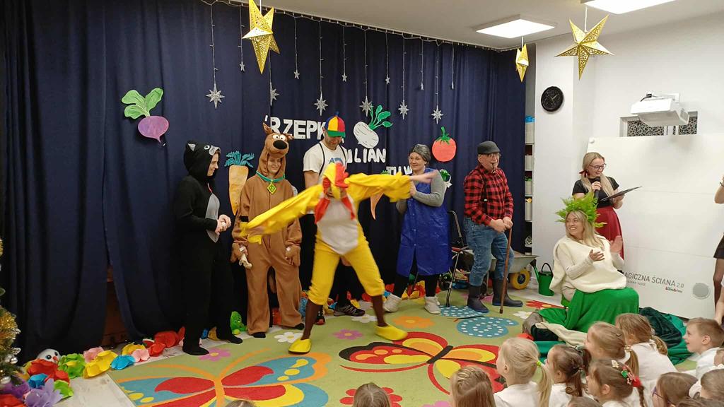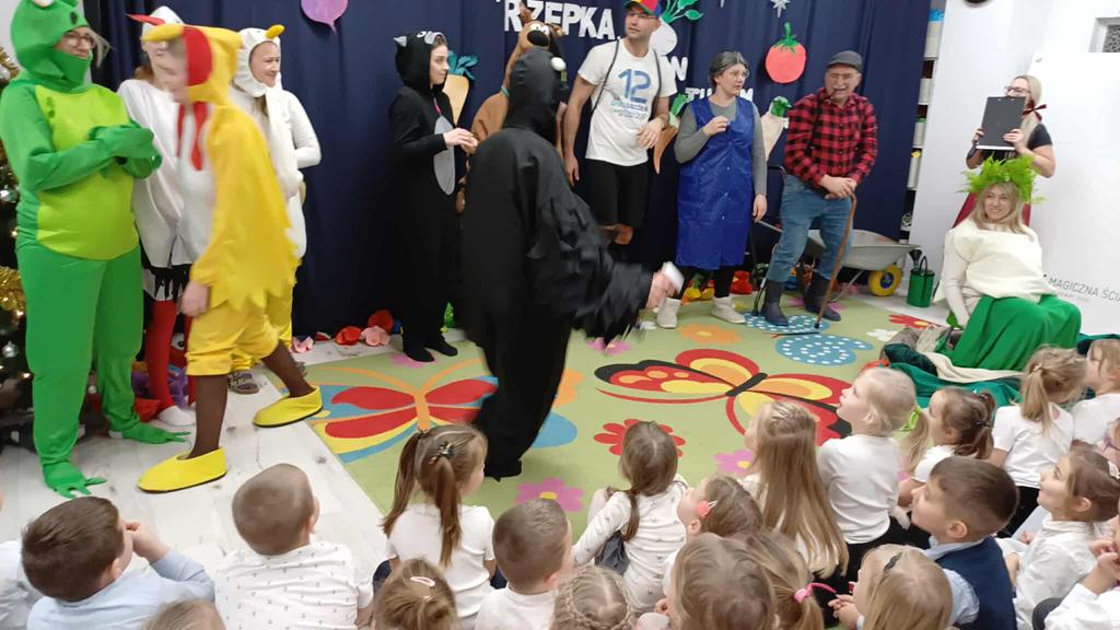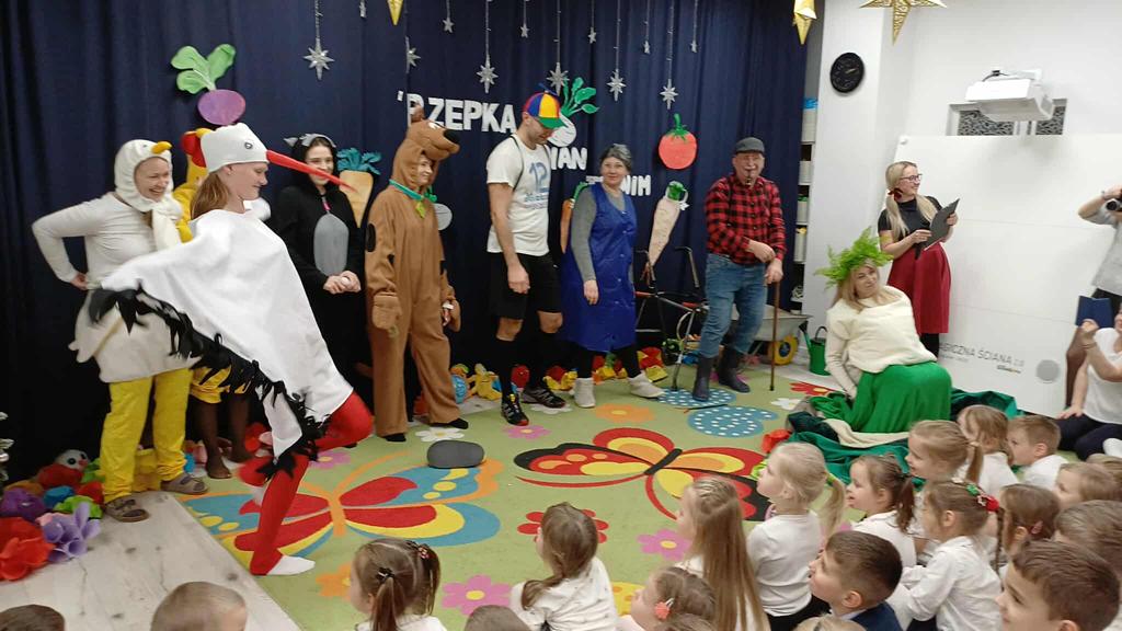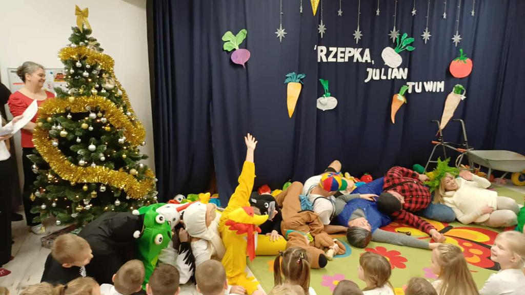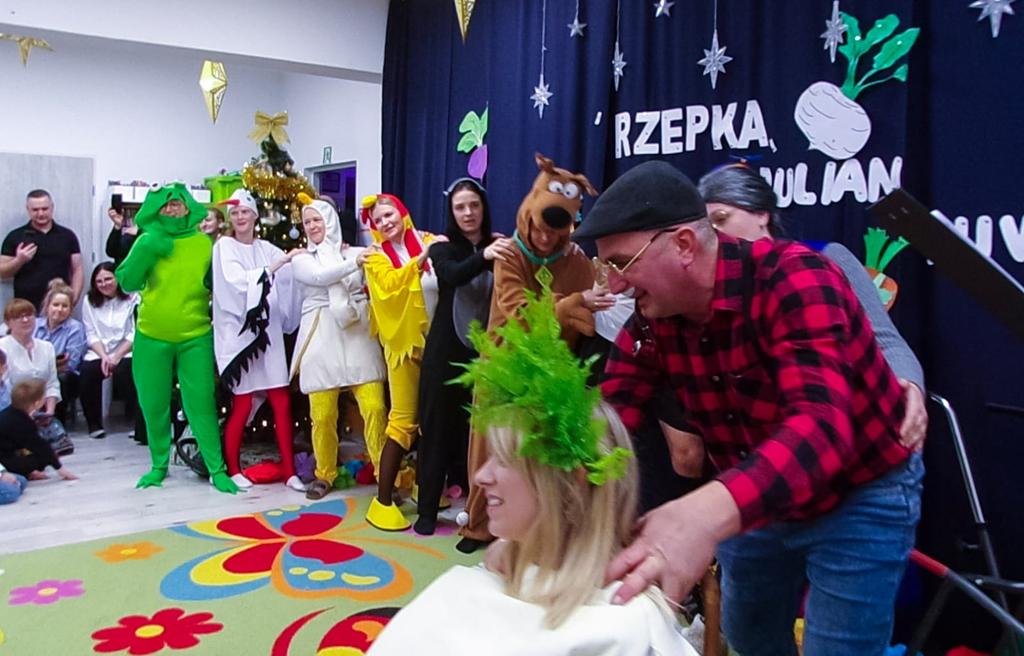 W głębi duszy wszyscy jesteśmy dziećmi nawet jak mamy swoje rodziny. Rodzice z Grupy Białej Przedszkola nr 7 pokazali, że w przedszkolu czują się dobrze nie tylko ich dzieci. Zorganizowali dla swoich milusińskich, przy współpracy z nauczycielkami wspaniałe kostiumowe przedstawienie, oparte na wierszu Juliana Tuwima „Rzepka”.