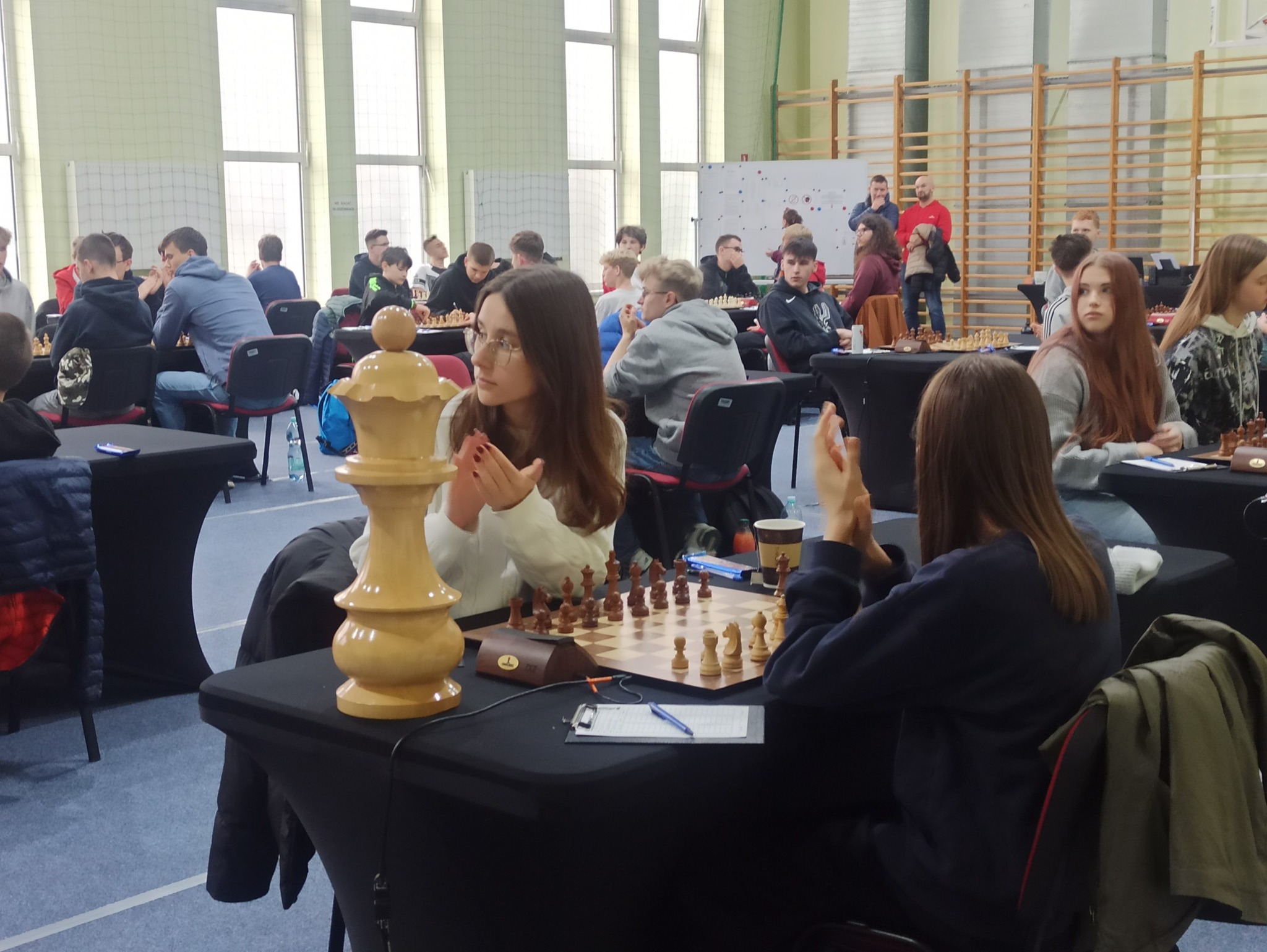 Po pierwszej rundzie jeden punkt ma też Natalia Panasiewicz z Jaćwieży Suwałki, jedyna suwalska szachistka rywalizująca o Mistrzostwo Polski kobiet do lat 20. Zdobyła jeden punkt chociaż nie rozegrała partii, gdyż nie miała rywalki, bo w turnieju rywalizuje 15 szachistek czyli nieparzysta liczba zawodniczek.