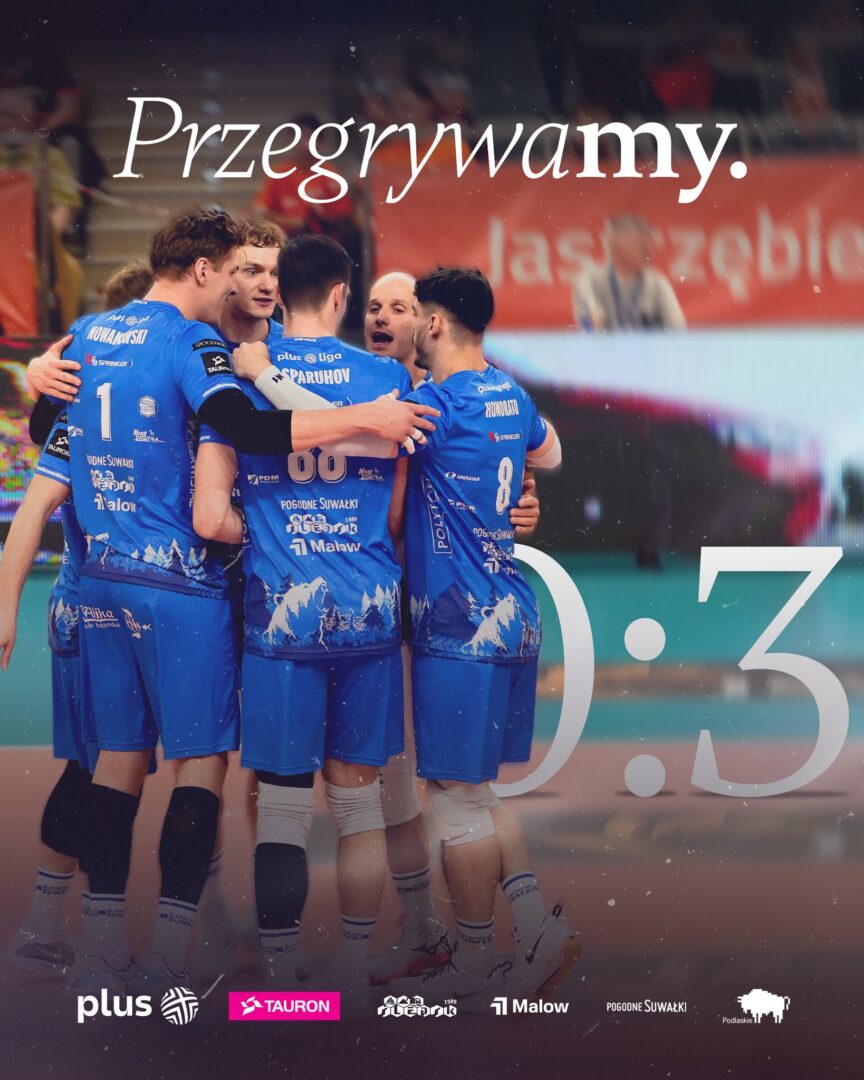 Jeszcze nigdy siatkarze Ślepska Malow Suwałki nie wygrali w PlusLidze meczu z Jastrzębskim Węglem. W drugiej kolejce na Śląsku suwalska drużyna ponownie przegrała 0:3 (20:25, 17:25, 31:33) z Jastrzębskim Węglem. O porażce zdecydowały końcówki setów pierwszego i trzeciego,w których rywale dominowali na parkiecie. Wciąż słabo wygląda rozegranie w suwalskiej drużynie. Trudno też będzie zdobyć punkty w najbliższym meczu z Treflem Gdańsk, który prezentuje się bardzo dobrze w nowym sezonie PlusLigi. Spotkanie rozpocznie się 31 października (piątek) o godz. 20:30 w Suwałki Arenie.