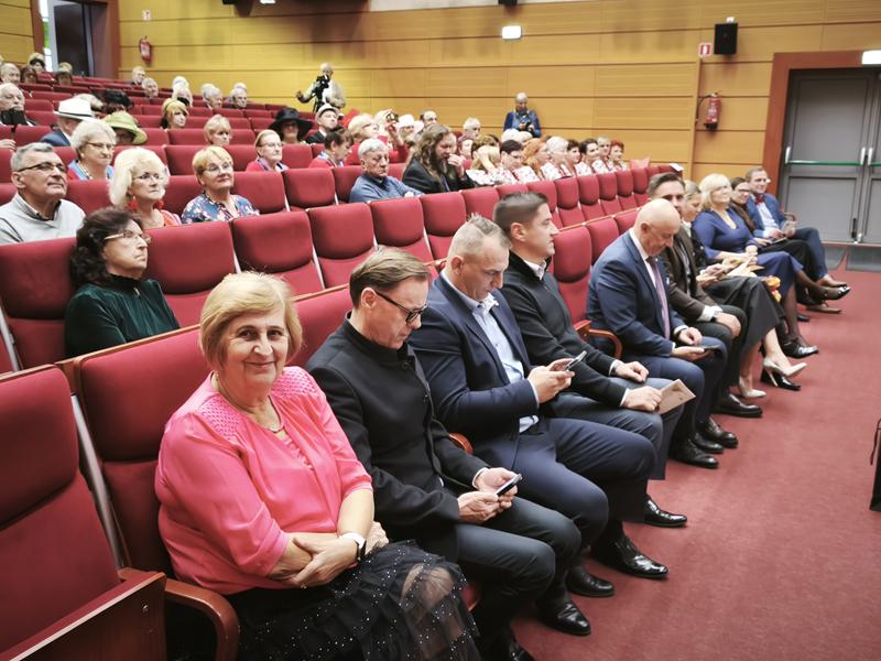 Następnie przyszedł czas na to, co najpiękniejsze – koncert jubileuszowy. „Złota Jesień” zaprezentowała przekrój swojego bogatego repertuaru – od ludowych pieśni i utworów biesiadnych po popularne przeboje z dawnych lat. Każdy występ nagradzano gromkimi brawami, a atmosfera na sali była pełna wzruszenia i serdeczności.