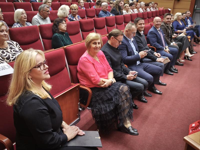 Uroczystość rozpoczęła się od powitania gości przez prowadzącą spotkanie oraz krótkiego wystąpienia opisującego wieloletni wkład zespołu w życie kulturalne miasta.