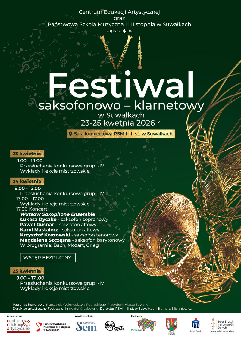 23-25 kwietnia 2026, Sala koncertowa PSM I i II st. w Suwałkach