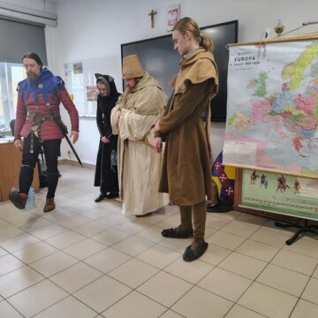 Zwieńczeniem dnia był pokaz Fundacji Żywej Historii Hanza – rekonstruktorów średniowiecznej Europy. Uczniowie zobaczyli inscenizację bitwy pod Grunwaldem w strojach z epoki Jagiellonów, mogli poczuć ciężar zbroi i dotknąć autentycznych rekwizytów. Dla wielu to właśnie ten moment okazał się największym przeżyciem całego dnia.