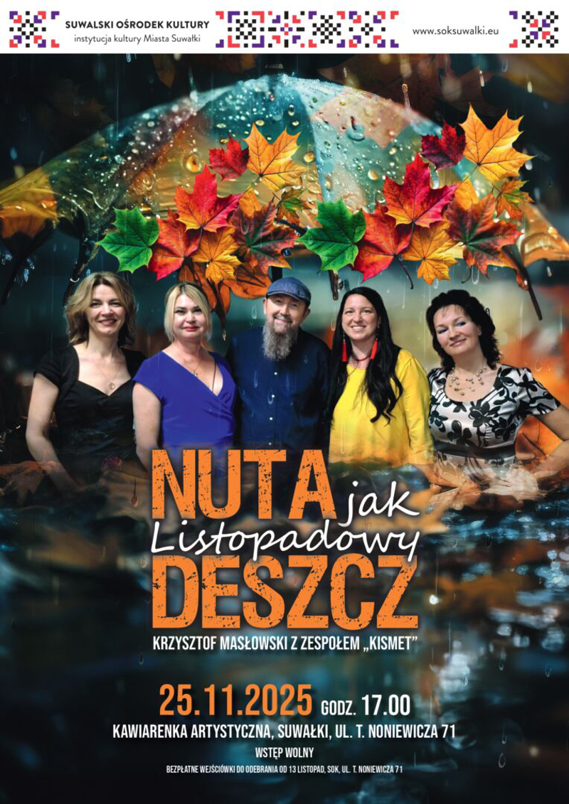 Suwalski Ośrodek Kultury zaprasza na koncert Krzysztof i Olena „Premierowo” 28.10.2025 r. godz. 17.00 Kawiarenka Artystyczna SOK, T. Noniewicza 71 Bezpłatne wejściówki do odebrania na T. Noniewicza 71 O zespole Duet wokalno-instrumentalny Krzysztof i Olena założony został w czerwcu 2025 roku jako autonomiczna jednostka funkcjonująca w projektu „Język polski z gitarą i piosenką”. W jego […]