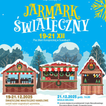 Suwalski Ośrodek Kultury serdecznie zaprasza na Jarmark Świąteczny, podczas którego będzie można poczuć prawdziwy klimat nadchodzących Świąt Bożego Narodzenia.