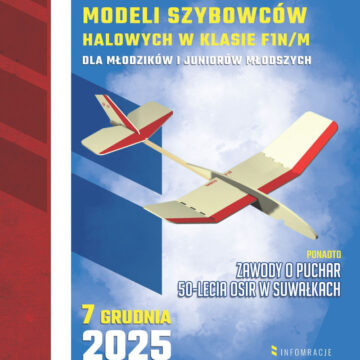 Mistrzostwa Polski Modeli Szybowców Halowych w klasie F1N/M dla Młodzików i Juniorów Młodszych odbędą się już 7 grudnia w hali sportowej OSiR przy ul. Wojska Polskiego 2! Organizatorem zawodów jest Ośrodek Sportu i Rekreacji w Suwałkach.